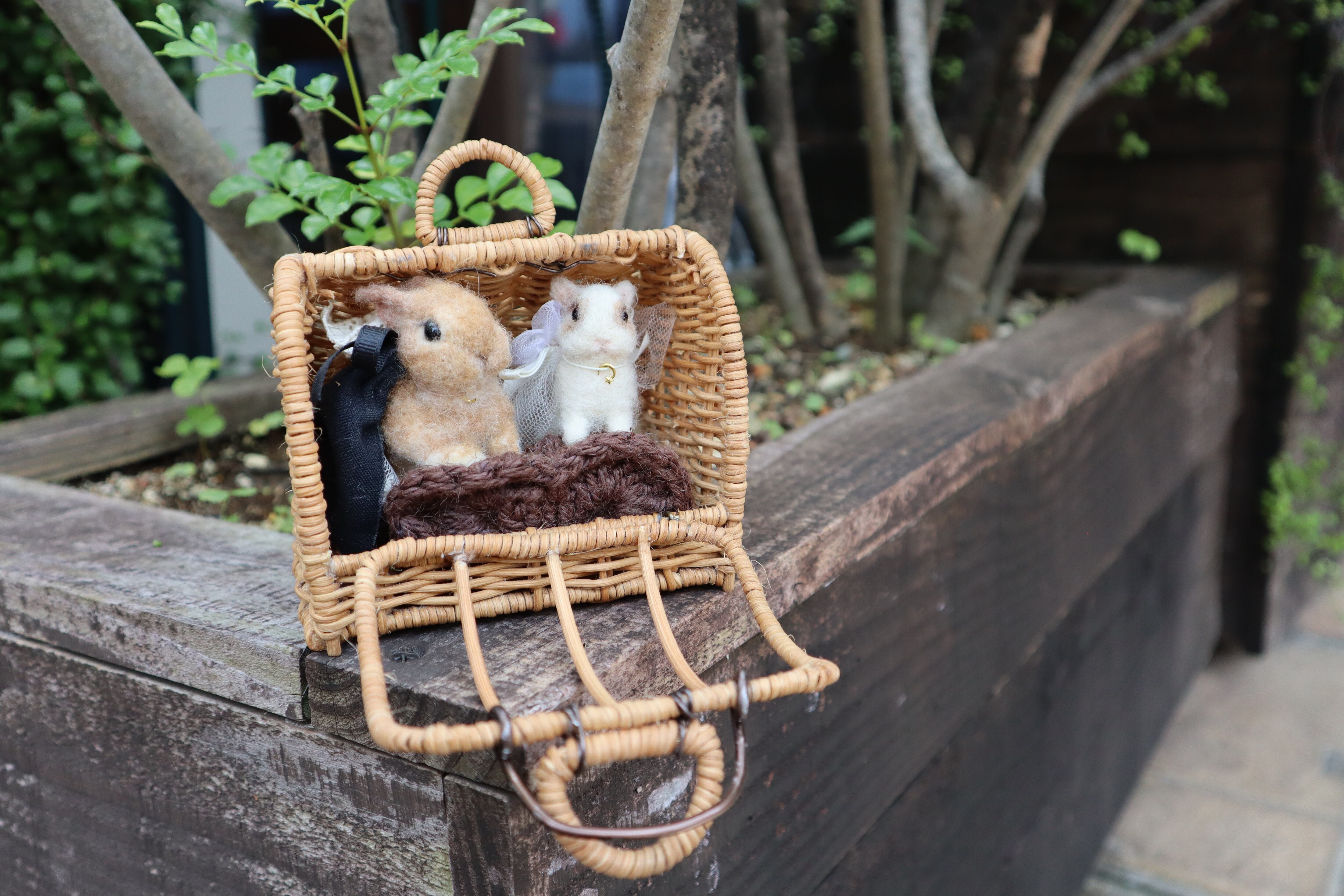 ※写真のモデルサイズ(茶うさぎ=約8cm、白うさぎ=約7cm)